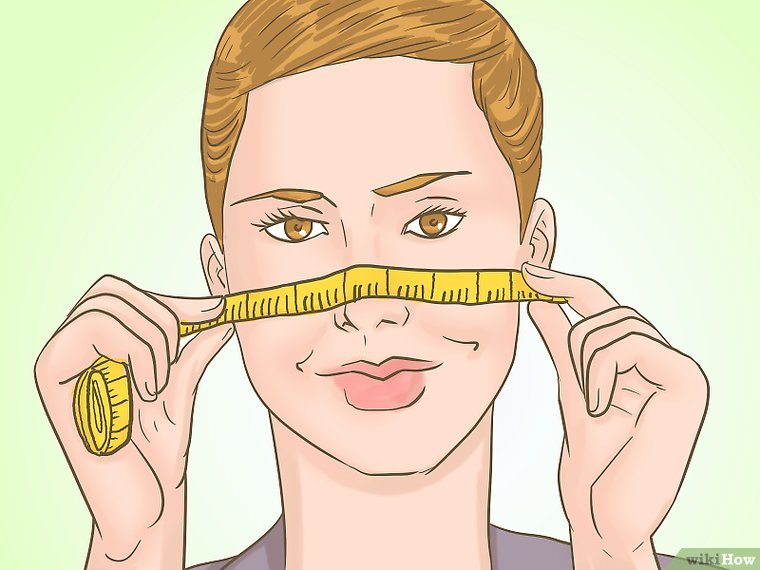 طول صورت خود را اندازه گیری کنید. برای اینکار از وسط پیشانی تا نوک چانه را اندازه گیری کنید.